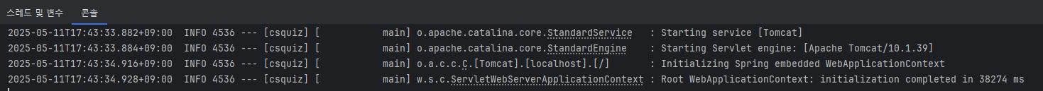 - 내장 톰캣이 실행되어 HTTP 요청 대기 상태로 진입