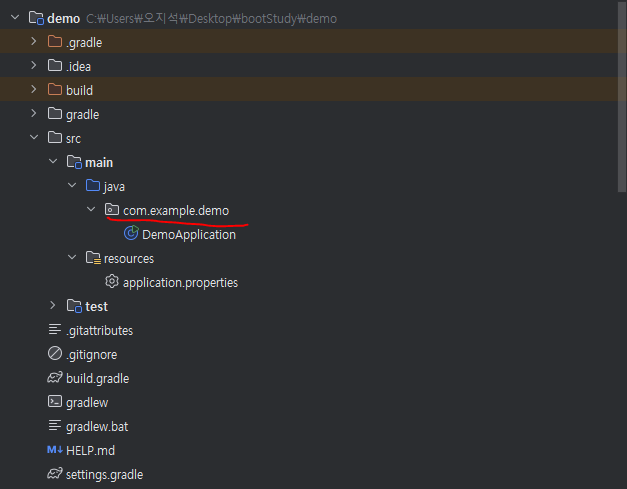 위 프로젝트를 기준으로 보면 com.example.demo 패키지 하위에 선언된 빈들만 스캔대상이 된다.