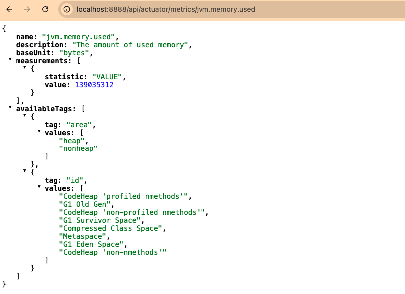 1)/actuator/metrics/jvm.memory.used: jvm 메모리 사용량 조회