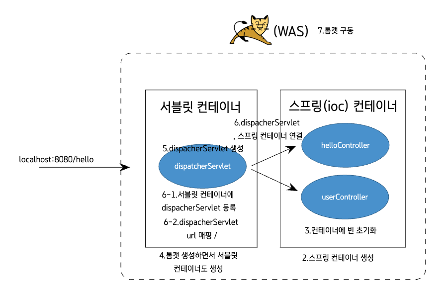 - DispatcherServlet을 서블릿 컨테이너에 등록